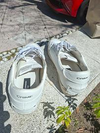 sneakers Crime London SK8 Deluxe, modello da uomo in pelle bianca caratterizzato da dettagli in suede e un design che richiama lo stile skate rétro #crimelondon #scarpecrimelondon #etichetta #scarpeconetichetta #scarbabianca