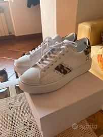 Sneakers D.A.T.E platform personalizzate su blazelab. Bianche con inserti leopardati e borchiette. Indossate una sola volta, in perfette condizioni.