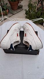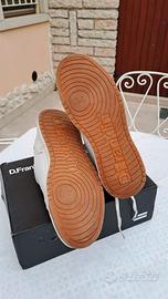 Paio scarpe D. Franklin n 44 bianche indossate una volta, come nuove, modello court basic stich navy, molto comode e ben imbottite, di ottima fattura, suola in phylon 4 cm per una ammortizzazione leggera, calzano perfettamente taglia 44, venditore privato nessuna garanzia, spedizione veloce con scatola originale, con imballo adeguato, grazie.