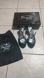 Eleganti scarpe da ballo in raso nero con strass, soletta antiscivolo e suola in cuoio. Sono state indossate solo una volta per uno spettacolo.