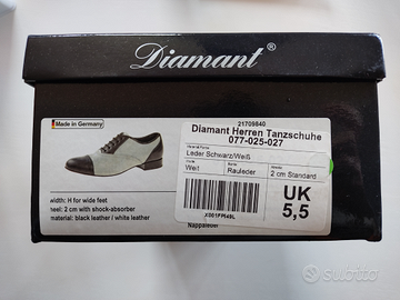 Scarpe da ballo prodotte artigianalmente in classic wingtip, stile Derby, con allacciatura a 5 fori .