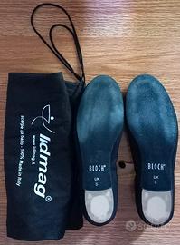 Scarpe da tango da donna (BLOCH), in stoffa, colore nero, legaccio colore rosa, 2,5 cm. tacco, misura 5 UK (38 ITALIA). Sacchetto originale per il trasporto. Buone condizioni (utilizzate poche volte). €40