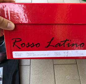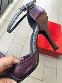 Vendo stupende scarpe da ballo fatte su misura n.34 marca Rosso Latino. Colore melanzana metallizzato, con cinturino e inserti glitterati piombo. Nuove. Utilizzate solo una volta ad un matrimonio. Tacco 10 cm. Complete di scatola originale, sacca e tacchi di ricambio. Utilizzabili anche per uscire, non solo da ballo. Pagate 165 Euro. Poco trattabili. Spese di spedizione a carico dell'acquirente.