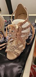 Scarpe da ballo latino americano nuove mai indossate come da foto , n.36,5 ,altezza tacco 10cm, ottimo plantare imbottito e suola scamosciata antiscivolo e salvatacchi inclusi per gare di competizione , causa infortunio e non utilizzo, vendo a70euro
