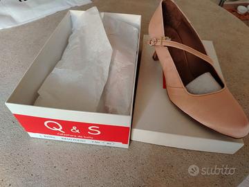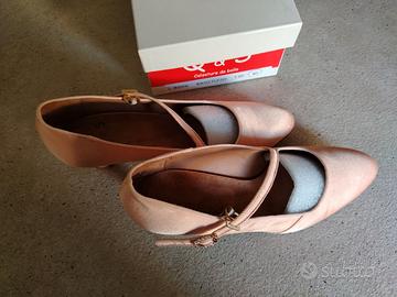 Scarpe da ballo " Quick and Slow" nuove, per danze standard/liscio/sala , in raso color cipria, tacco cm. 6, cinturino trasversale con chiusura a gancio, facile e veloce, misura n. 40.
