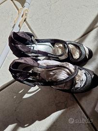 scarpe da ballo in pelle internamente, esterno raso nero. tacco 8 cm marca Lancetti. usate 3 volte. vendo per inutilizzo. nere con strass