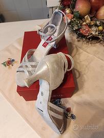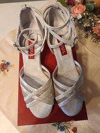 scarpe da ballo tg 38,5 camoscio lamé argento
