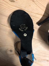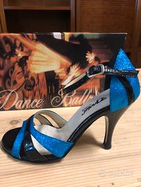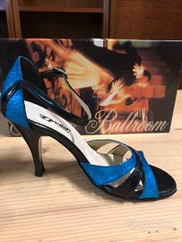 Scarpe da ballo nuove della ditta Anniel con suola in bufalo di colore blu e nero misura 39