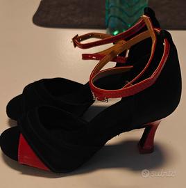 Vendo scarpe da ballo da donna ,nere con profili rossi, numero 35, mai usate, nuovissime!
