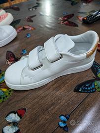 vendo scarpe bianche da bambino numero 34 usate poche volte con la punta leggermente rovinata come si vede nelle foto