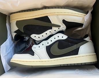 Scarpe da basket Travis Scott x Air Jordan 1 Reverse Swoosh 5.0 Leather Low "Medium Olive" resistenti e retrò