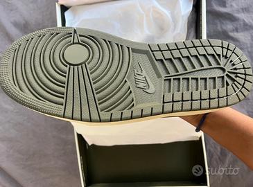 Le Travis Scott x Jordan Air Jordan 1 Reverse Swoosh 5.0 Leather Low "Medium Olive" sono delle scarpe da basket basse e resistenti, dal design retrò. La colorazione verde oliva è leggermente sobria, mentre il design generale mantiene lo Swoosh invertito. Il tallone presenta una ghost face rossa e le classiche ali, rendendole perfette per l'uso quotidiano.