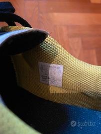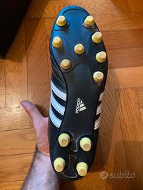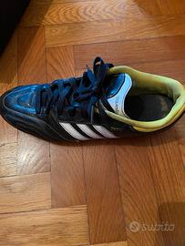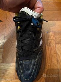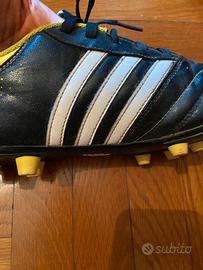 Scarpe da calcio Adidas con dettagli neri e gialli. Taglia 44 (Usa 10, Uk 9 e mezzo) - Design sportivo. - Tre strisce Adidas laterali. - Tomaia in materiale sintetico.