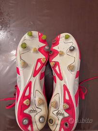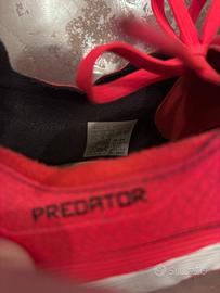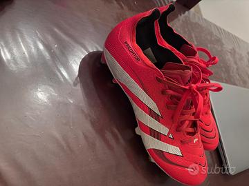 Scarpe da calcio Adidas Predator in rosso vivo con dettagli bianchi. Condizione generale molto buona con minimi segni di usura. I tacchetti possono essere rimossi facilmente e possono essere riusati(non disponibili interamente per entrambe le scarpe).