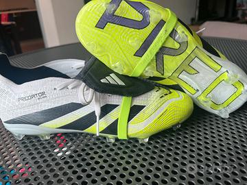 NUOVE USATE 1 Volta Vendo scarpe da calcio Adidas Predator originali, modello con tacchetti FG (per erba naturale), colore bianco con dettagli giallo fluo e nero.