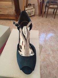 Scarpe da cerimonia con strass in argento e camoscio blu. Quasi mai utilizzate. Numero 38
