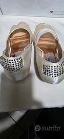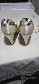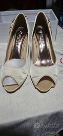 vendo bellissimo paio di décolleté da cerimonia beige open toe con decorazioni strass,in tessuto usate solo una volta.