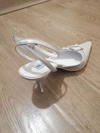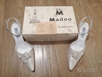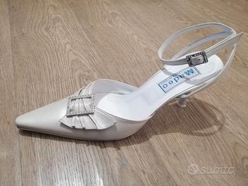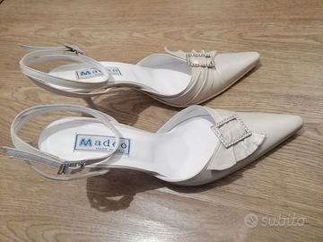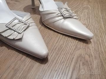 Scarpe da cerimonia in vero cuoio ditta Madeo colore bianco beige con brillantini, taglia 39 usate una volta, complete di scatola originale hanno solo la punta con dei segni di usura vedasi ultima foto