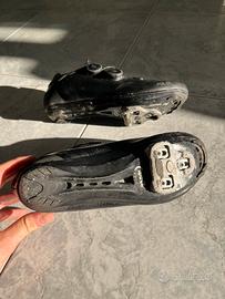 scarpe da ciclismo in ottime condizioni, la destra è leggermente rovinata in punta per per il resto perfette doppio boa per regolazione taglia 42 vendo con tacchetti usati