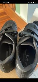 Vendo scarpe da MTB Shimano SH-ME-1 da uomo, colore nero, taglia 46 EU (lunghezza piede 29,2 cm), usate poco e tenute molto bene: strutturalmente integre, pulite e pronte all’uso.