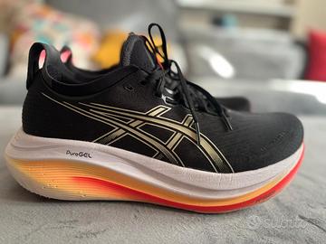 Scarpe in ottimo stato (percorso circa 450 km). Vendo x passaggio a modello successivo. Piccolo segno di usura sulla parte interna del tallone. Suola in buono stato, tomaia in ottimo stato. Brand Asics Taglia 44,5