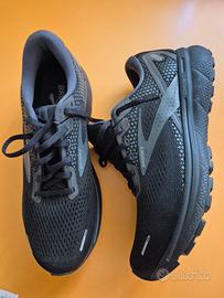 Scarpe da corsa uomo Brooks Ghost 14 colore nero black ebony Nr. 43 EUR, scarpe running con suola in gomma ammortizzata al 100% grazie alla tecnologia DNA LOFT per una corsa più morbida e fluida, il design offre massima vestibilità, con stringhe, materiale esterno sintetico e interno in tela. Nuove senza scatola.