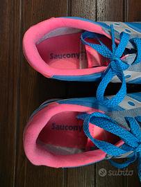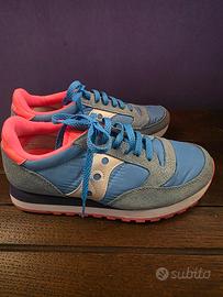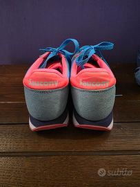 vendo scarpe Saucony Jazz da donna azzurre e fucsia. Vanno solamente lavate, ma come modello di scarpa è integro, non ha segni di usura. Numero 39. Comodissime
