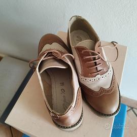 Scarpe da Donna colore Crema Suola In Pelle Con Stringhe Marroni N 36