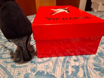 Scarpe da ballo n.40, nere, lacca, pelle camoscio, tacco 6,5-7 cm, fondo in bufalo vendo per inutilizzo