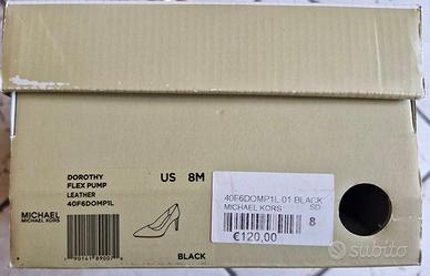 Cedo scarpe da donna delle décolleté nere con tacco alto 8 cm, di Michael Kors, usate 2/3 volte, n. 38 in confezione originale. Al prezzo sono da aggiungere le spese per il tipo di spedizione da concordare. Disponibile a fornire ogni altra informazione o foto di dettaglio.