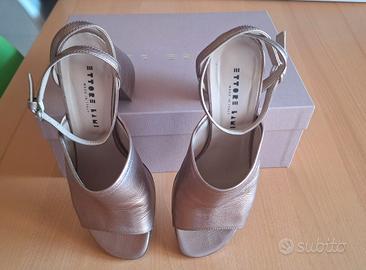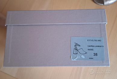 Si vendono scarpe da donna (marca Ettore Lami) in pelle di capra laminata color rame, collezione 2020, numero 38, tacco 8 cm.