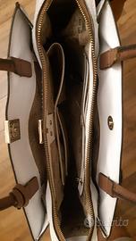 Per chi lo volesse, possibilità di acquistare anche la borsa GUESS da donna, color beige, due tasche laterali capienti con chiusura magnetica, vano principale centrale con tre tasche interne di cui una con zip. Logo pendente in metallo. Prezzo della borsa, 60 euro.