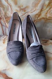 Eleganti scarpe da donna di Luciano Barachini in vera pelle e camoscio, taglia 39 | vera pelle | classico stile di lusso italiano Eleganti scarpe da donna realizzate in vera pelle e camoscio, sia all'interno che all'esterno, dal rinomato Luciano Barachini. I loro design senza tempo e lussuosi sono pensati per donne sicure di sé che sanno chi sono e cosa vogliono. Non si limitano a camminare, ma si presentano al mondo e a chi le sta intorno con sicurezza. Ogni passo è un passo di autoaffermazione! Questo modello è realizzato in una raffinata tonalità grigio grafite con una morbida finitura in velluto. Il camoscio presenta una patina naturale e vibrante, proprio quell'effetto che crea la sensazione di un prezioso pezzo vintage e rende le scarpe visivamente più profonde e interessanti. Nonostante il tacco di 12 cm, la forma ampia delle scarpe le rende molto comode da indossare. Le gambe appaiono visivamente allungate e la forma leggermente pesante delle scarpe fa apparire la figura più eretta e slanciata. ⚠️ Importante: questo aspetto "leggermente usurato" non è dovuto all'usura, ma è una caratteristica della pelle scamosciata, che può essere facilmente eliminata spazzolandola nella direzione desiderata con una spazzola morbida per pelle scamosciata. Pulizia: utilizzare uno spray per la cura di nabuk/pelle scamosciata. ✔ Solette nuove. ✔ Scarpe mai indossate. ✔ Interno in morbidissima pelle per un comfort ottimale. ✔ Forma classica per un look senza tempo. 🏷 Marca: Marchio: "Luciano Barachini" 📏 Specifiche: Taglia: 39, altezza tacco: 12 cm Materiale: vera pelle + pelle scamosciata Colore: grigio grafite Tacco: classico, stabile Condizioni: nuove (mai indossate)