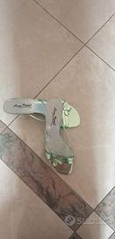 Ciabatte da donna verdi con brillantino sul fiore, tacco basso, comode "Anne Michelle".