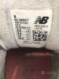 Vendo scarpe sportive da donna-ragazza marca NEW BALANCE, modello 565, colori grigio e rosa, lato suola bianco.