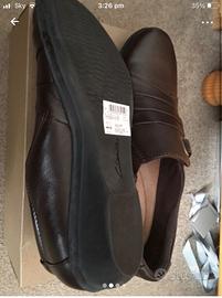 Scarpe da donna Clarks, mai indossate, nella scatola originale, marrone scuro, taglia 38.