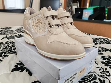 Scarpe modello sneakers da donna mai indossate ancora nella propria scatola. MATERIALE : Vera pelle. SUOLA : Gomma