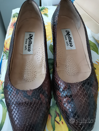 Vendo bellissimo, stupendo paio di scarpe in vera pelle di coccodrillo marroncino maculato "Melluso" n. 36 tacco comodo alto cm. 5 vedere per credere, prezzo ulteriormente ribassato