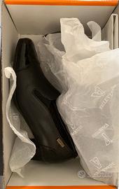 Vendo scarpe da donna Valleverde praticamente nuove; usate una sola volta per pochi metri dall'auto al ristorante e ritorno. Il numero è 35 ma calzano come un 36. Pelle di alta qualità con nessun tipo di difetto estetico; rifinitura in goretex traspirante; suola come detto pari al nuovo; comodissime ed eleganti; scatola originale. Prezzo leggermente trattabile.