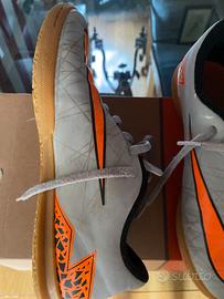 Regalo poco riuscito, usate un paio di settimane giusto alla presenza del donatore , direi seminuove scarpe da ginnastica Nike grigio , arancio e nero, serie Hypervenom, misure indicate in foto