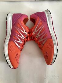 Scarpe da ginnastica utilizzate poco/quasi nuove/colori arancione, rosa , argento/nessun difetto/tenute benissimo/non presentano nessun segno di usura anche perché le ho indossate poche volte e sempre al chiuso, adatte per palestra e fitness, numero 38 che calza regolare, lunghezza plantare interno 25 cm
