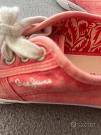 Queste scarpe sportive in tela Pepe Jeans sono un mix perfetto di stile e comfort. Con il loro colore corallo, sono l'accessorio ideale per aggiungere un tocco di colore a qualsiasi outfit. Sono leggere, traspiranti e realizzate con materiali di alta qualità che assicurano comfort tutto il giorno. Le scarpe presentano una suola bianca robusta con righe rosse, garantendo una trazione ottimale e uno stile accattivante