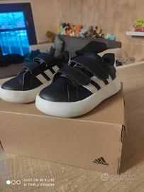 un paio di Adidas nere con strisce bianche n.25 usate pochissimo prezzo originale 33 euro