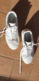Scarpe da ginnastica donna "Adidas" TG. 38.5 con un design bianco e dettagli iridescenti.