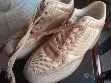 Scarpe da ginnastica donna Camomilla Love numero 38 beige/dorato ,tomaia in mesh traspirante ,suola in gomma resistente usate pochissimo