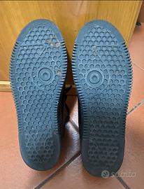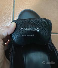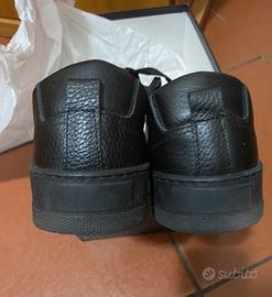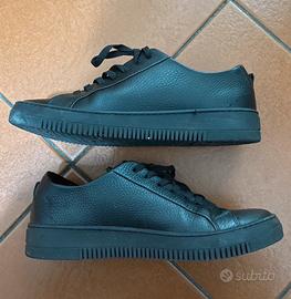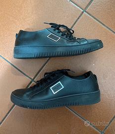 Scarpe in pelle nere, suola in gomma di Antony Morato semi nuove indossate pochissime volte, numero 42, con scatola originale. Modello scarpa da ginnastica che può essere usata anche sotto un bel vestito vista la fattura.