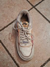 scarpe da ginnastica Nike 41. Pelle bianca rosa e arancio. Usate. Unico difetto un buco dentro nel tallone ( vedi ultima foto). Senza scatola. Faccio sconti sui set. Disponibile a incontrarci a Bologna per lo scambio a mano o spedizione veloce