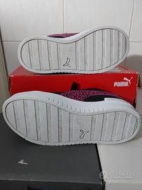 Scarpe da ginnastica della Puma da bambina,con lacci,suola in gomma bianca ed inserti fucsia laterale. Misura 34