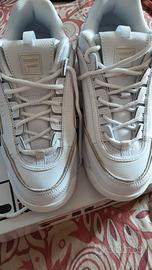 Vendo scarpe da donna della fila acquistate alle gru, sono ancora nuove solo provate sono di colore bianco con le striature leggermente più scure. Il numero delle scarpe è il 39