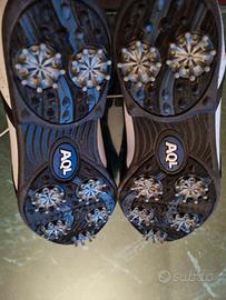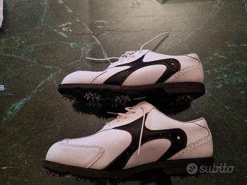 scarpe da golf da donna idrorepellenti footjoy con tacchetti usate una volta in perfette condizioni di color bianco, comprende scatola originale e certificato waterproof.